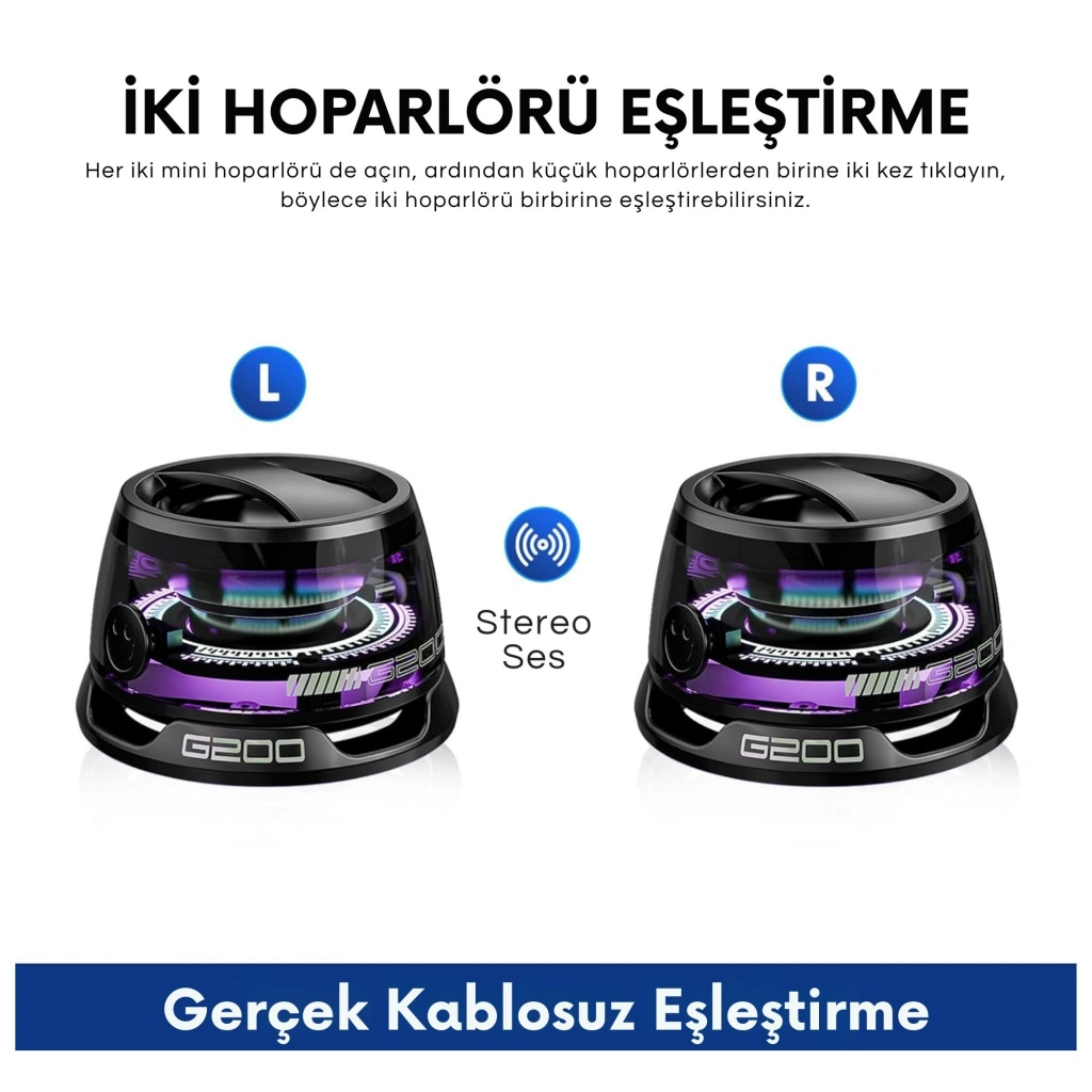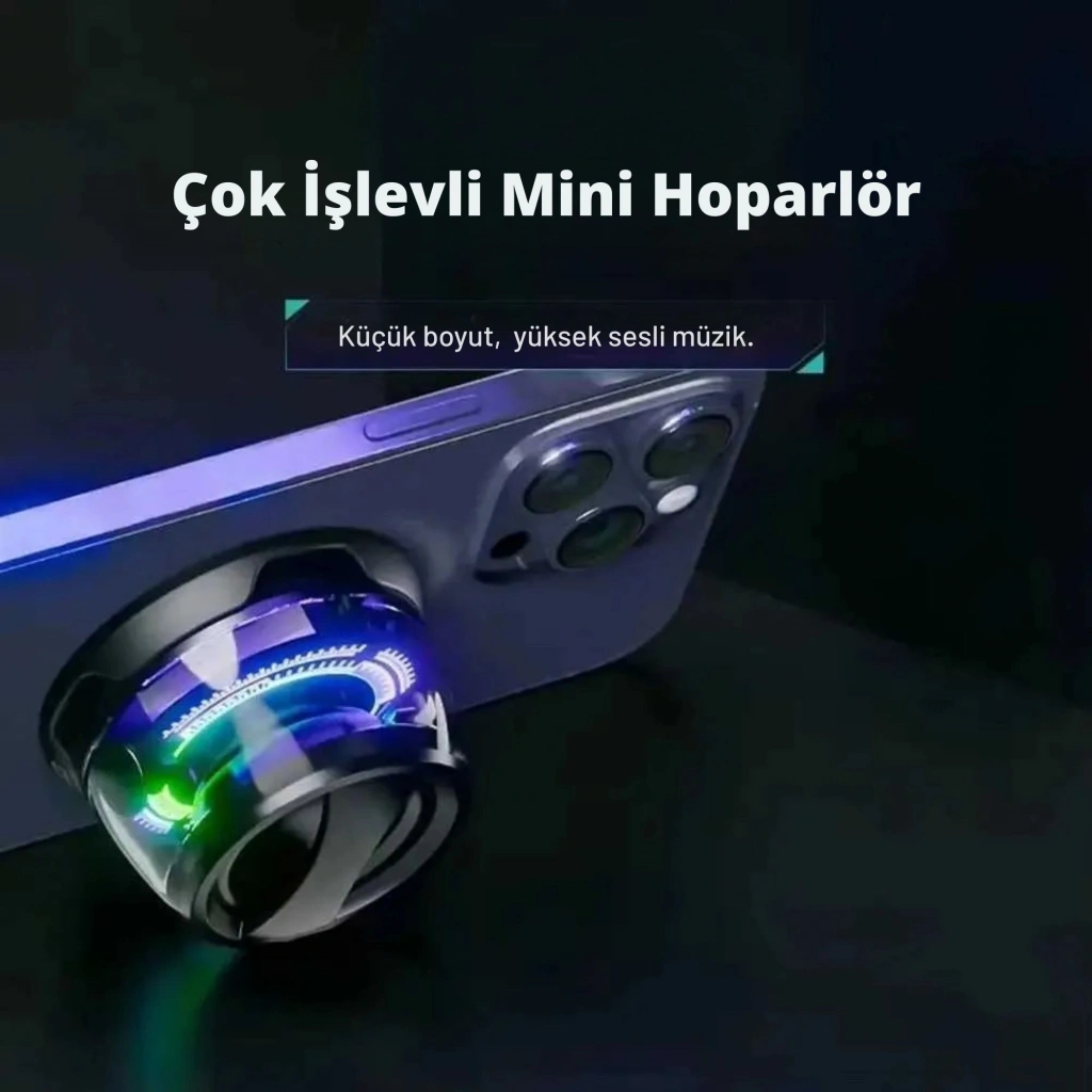 ETASHOP Manyetik RGB Mini Bluetooth Hoparlör Telefon Tutuculu 5W Stereo Ses IPX5 Su Geçirmez ETASHOP Manyetik mini Bluetooth hoparlör, cep telefonunuzun arkasına ya da metal yüzeylere tek hareketle tutunarak müziği Hgittiğiniz her yere götürmenizi sağlar. 40 mm dinamik sürücüsü ve 5W’a kadar çıkış gücüyle, boyutuna rağmen şaşırtıcı derecede güçlü baslar ve temiz stereo ses üretir. Şeffaf gövde içindeki RGB ışık efektleri oyun, film ve müzik keyfinize görsel bir atmosfer katar. Bluetooth 5.3 teknolojisi; telefon, tablet, laptop ve oyun konsollarına hızlı ve kararlı bağlantı sunarken IPX5 su geçirmez yapı bisiklet, yürüyüş, kamp ve duş gibi zorlu senaryolara dayanıklılık sağlar. Tek şarjla 6–7 saate kadar müzik çalabilen , çift hoparlörle TWS olarak eşleştirilip gerçek stereo ses sistemi hâline getirilebilir. • MANYETİK TELEFON STANDI & METAL YÜZEY TUTUŞU: Gövdeye entegre 9 güçlü mıknatıs sayesinde , buzdolabı, spor ekipmanı, bisiklet gövdesi gibi metal yüzeylere güvenle tutunur. Kutudaki metal halka ile MagSafe olmayan telefonlara da arka kapak üzerinden sabitlenebilir; hem hoparlör hem telefon standı olarak kullanılabilir.